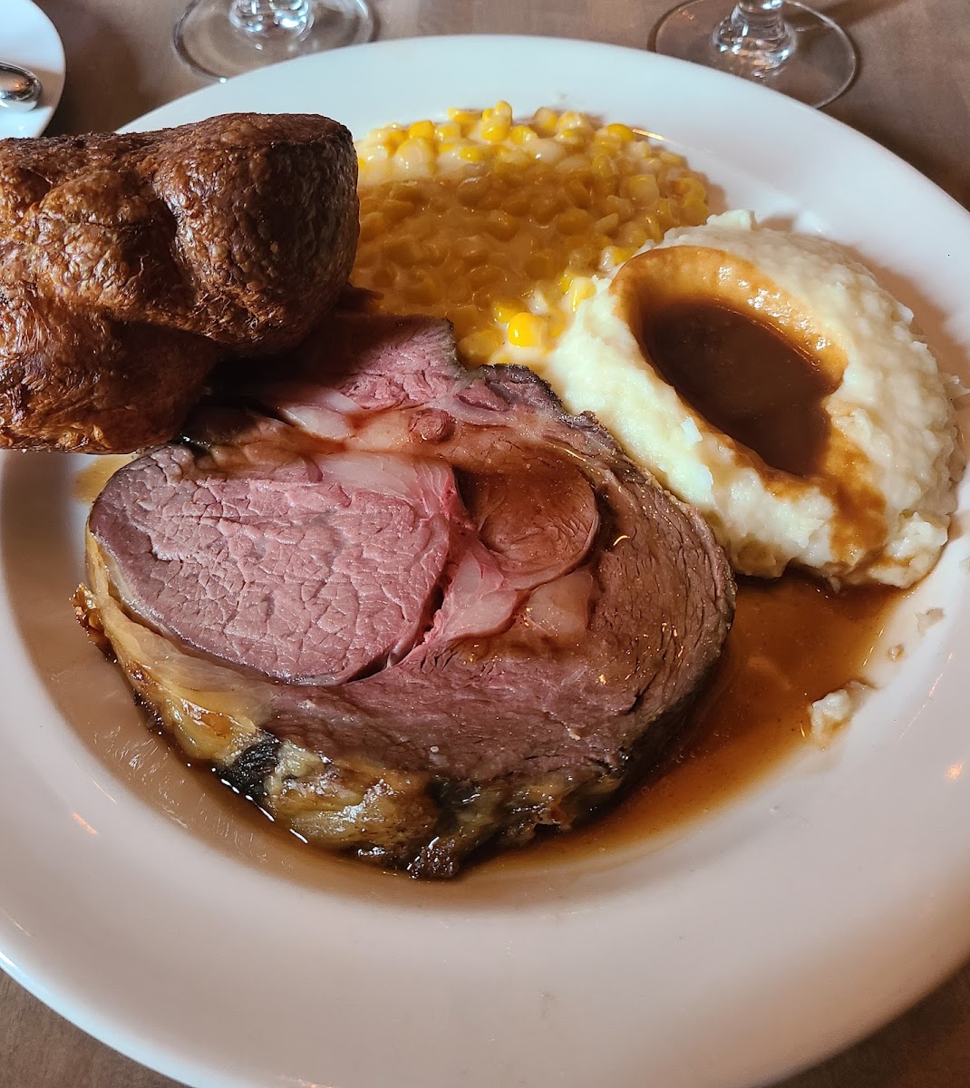 Food, service, and ambiance were top notch, especially during the holidays when they have their decorations up and their carolers. Valet parking is available but we were able to find street parking. Food/Drink- 5 stars Oysters- these were an alright start. But everything else gets much better Continental Louie cocktail- this was divine and my favorite dish of the night. The huge chunks of crab and lobster were so juicy and perfectly seasoned. I highly recommend this Pride of the Crowns salad- the salad was superb. So much buttery goodness with the toppings and mixed perfectly Lobster bisque- really hearty with plenty of lobster flavor. Really enjoyed it English rib chop- we ordered this with the Neptune upgrade. It was good, but I would just stick with their specialties of prime rib for the entree Prime rib- tried the Tokyo and Crown cuts. I really enjoyed the Tokyo cut as the thinly cut prime rib was so tender and sucked up all the au jus flavor Desserts- we tried the English trifle, banana cream pie, and CC Brown's Hot Fudge Sundae. The banana cream pie was easily the favorite, but everything was delicious Service- 5 stars Our server, Daniel, was fantastic throughout. The whole staff were so attentative and made sure we had a fantastic experience Ambiance- 5 stars The English inn vibe was great and loved the decor throughout the restaurant. It's a great spot to be during the holidays with their decorations and holiday carolers Bottom Line Fantastic steakhouse with excellent food, service, and ambiance