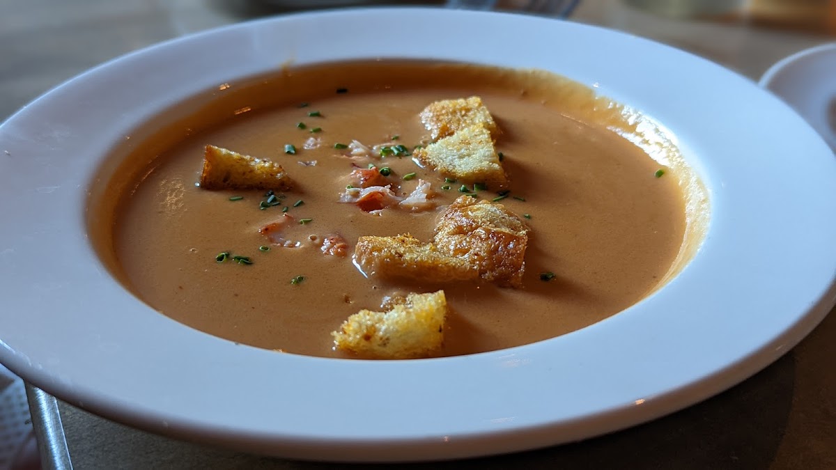 This steakhouse in beautiful Corona del Mar truly stands out. I loved the classic British vibe, elegant yet cozy. The staff was incredibly polite and helpful. The menu was interesting with plenty of tempting options. We started with the onion soup, which was rich and flavorful ; a perfect beginning. The steak was juicy and cooked to perfection, and the chocolate souffle at the end was absolutely amazing. They also offer a rewards program, which is a nice bonus. I’ll definitely be coming back.